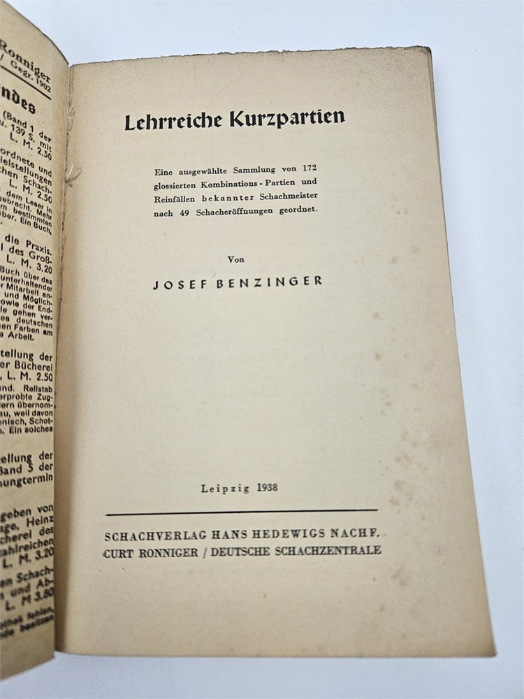 Schachverlag Hans Hedewigs Nachf. Curt Ronniger, Leipzig, 1938, 80 p.
