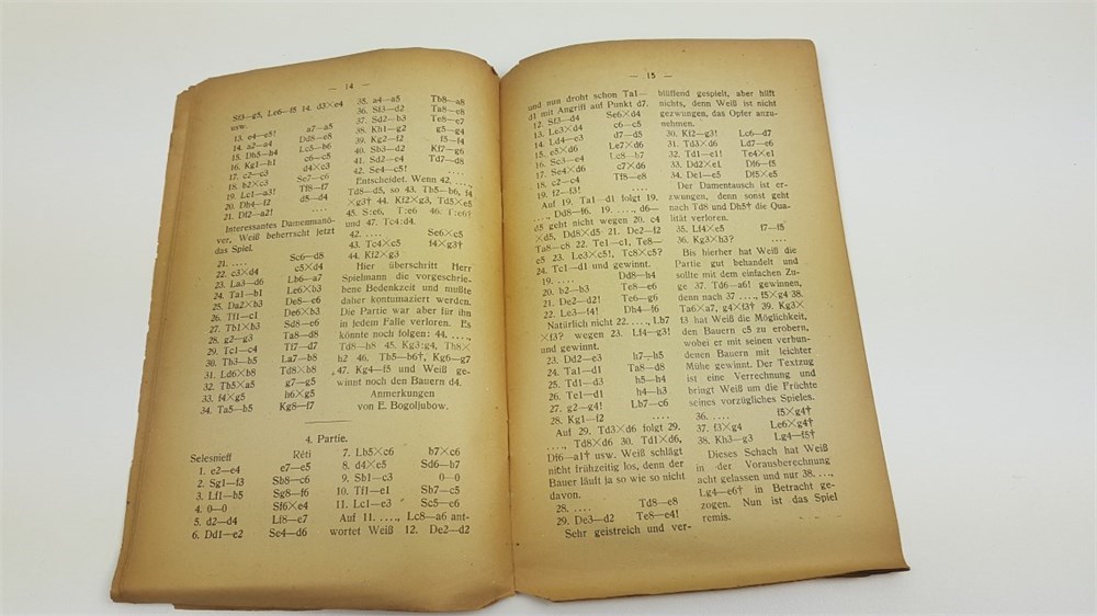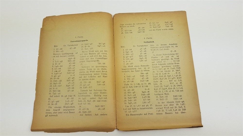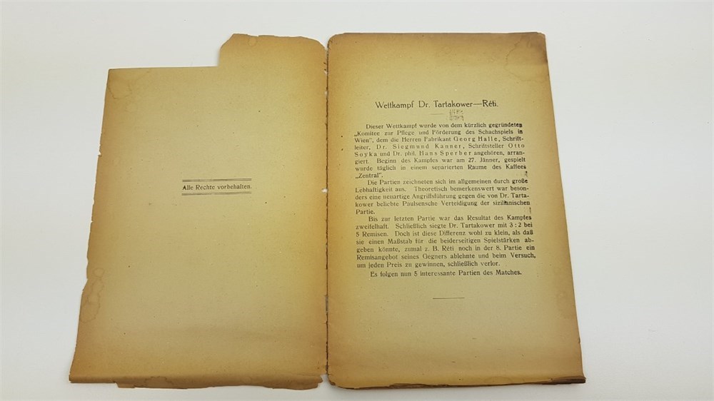 L/N 3231 With match Réti - Tartakower and Viermeisterturnier The paper is very fragile and is already at some places browned.