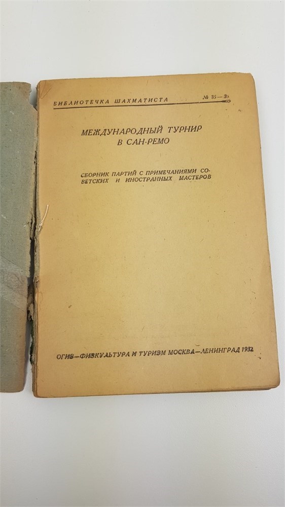 L/N 5442, Sacharov 488 International tournament in San Remo. Collection of games with notes by Soviet and foreign masters. M.-L., FiT, 1932. 151 p. (Chess player's library. No. 35/36). 5100 copies. With the edit. S. V. [S. O. Weinstein]. All 120 games of the tournament. - Table of games (p. 9), index to openings. Bibliotechka shakhmatista: 35/36.
