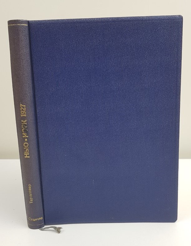 L/N 5415, S 478 Tartakower S. G. New York Match Tournament of 1927. Collection of games with an introduction, article, theoretical review and description of the rounds. [L.], "Shakhm. Listok", [1927] '144 p.; 1 p. .port. 5000 copies. All games with notes. The "Introduction" contains the history of the organization of the tournament, its results, and the characteristics of the participants. The theoretical article analyzes the openings of the tournament. Indexes: openings; games; strategic ideas (pp. 39--11). Reviews: 1) Smirnov A. A. - "Shakhm. Listok", 1927, No. 10, pp. 158- 159; 2) Zubarev I. - "64", 1927, No. 11, p. 11; 3) Goltz R. Our tournament collections. - "64", 1931, No. 17/18, pp. 285-287