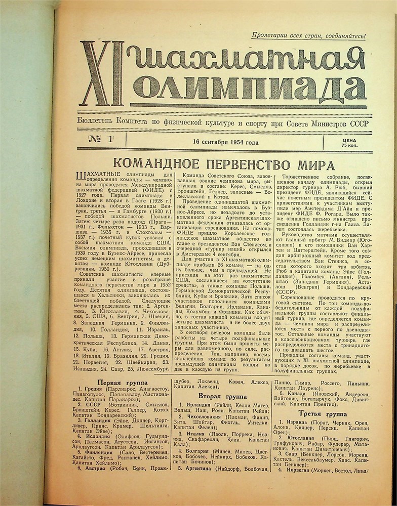 XI Chess Olympiad, Amsterdam 1954 (in Russian) View Watchlist >