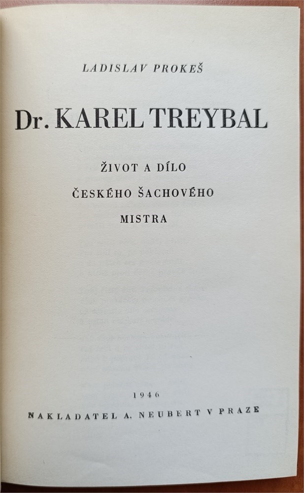 Prokes, Ladislav. Dr. Karel Treybal. Zivot a dilo ceskeho sachoveho mistra. Praha, A. Neubert, 1946. In Czech. 202 pages, 2 leaves. LN 3136.