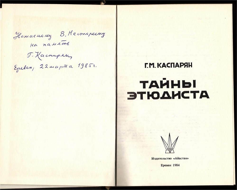 KASPARIAN G.M. - Tainy etiudista - SIGNED! View Watchlist >