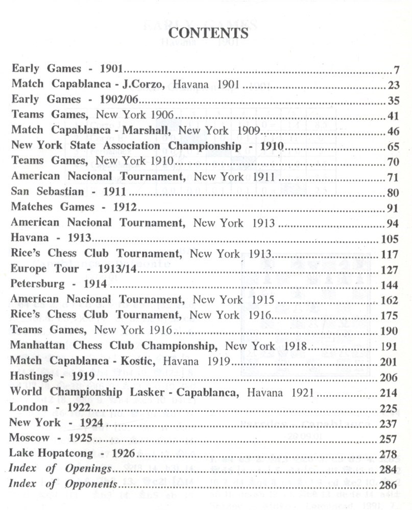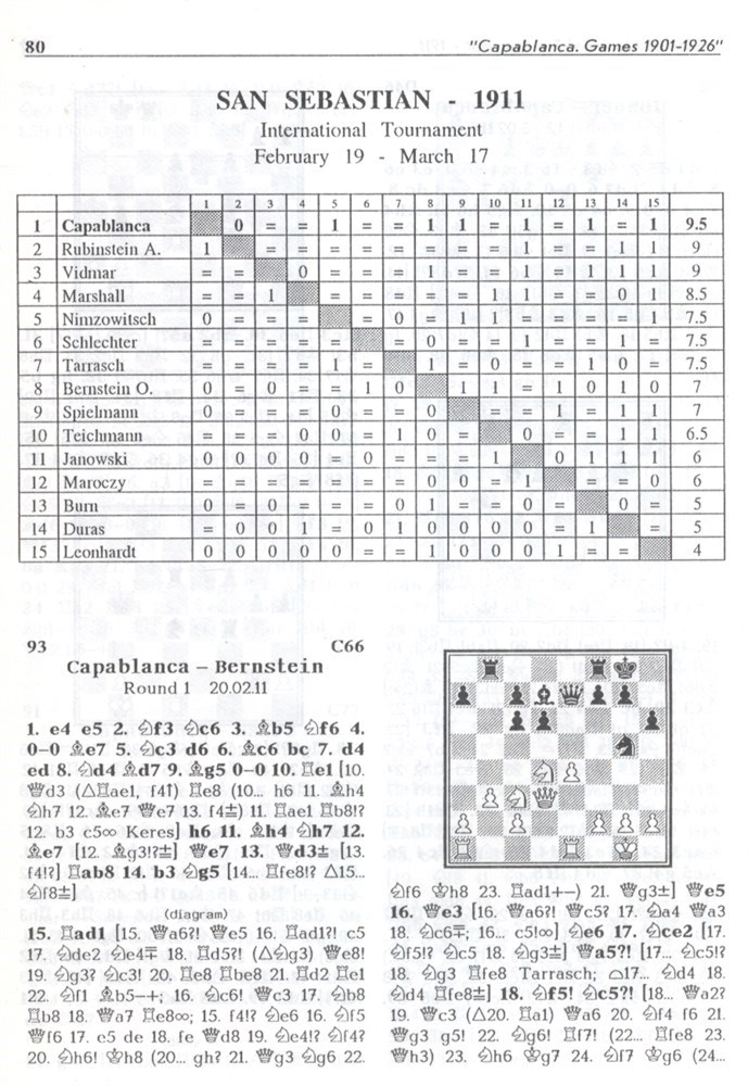 All Capablanca's 647 tournament and match games. Many annotations and diagrams.