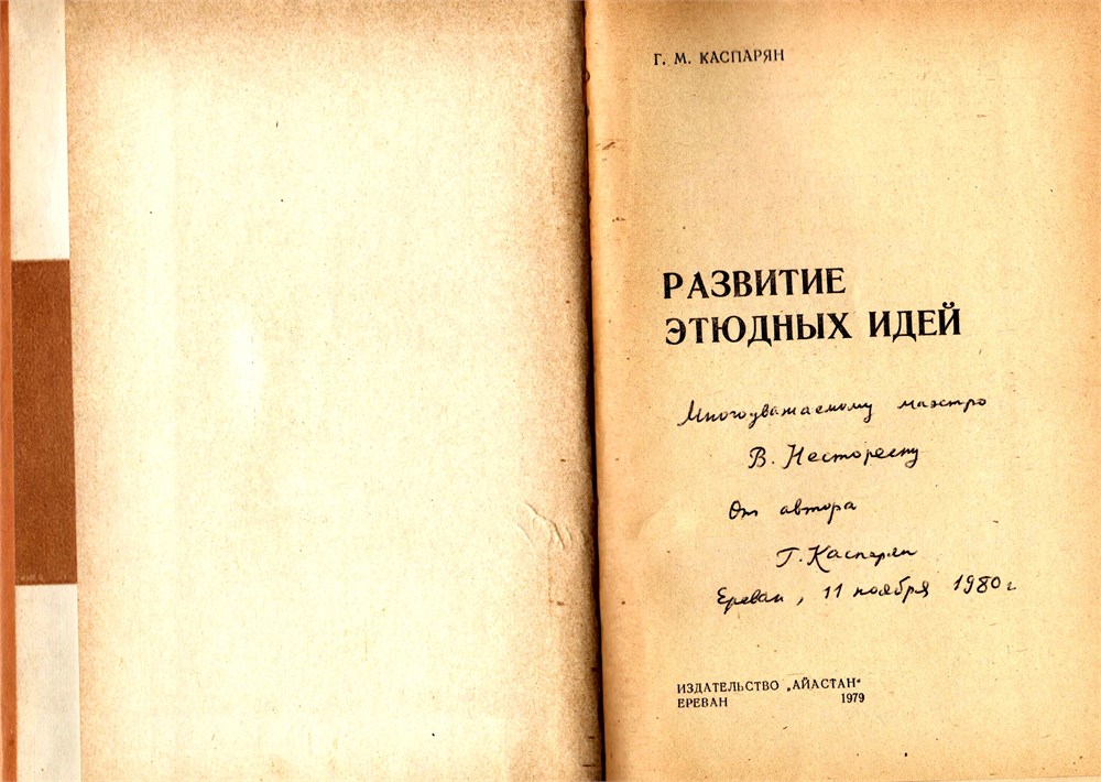 KASPARIAN G.M. - Razvitie etiudnyh idei - SIGNED! View Watchlist >
