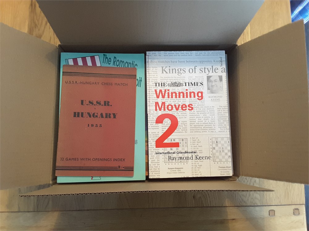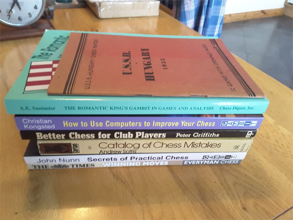 Fifteen paperback chess books. All are in at least Good Plus condition. Some are in Very Good condition. The "Catalogue of Chess Mistakes" has scuffing on the covers. The "USSR vs Hungary, 1955" is quite well read. The "Times Winning Moves, Vol 1" and the "Dynamic Chess Strategy" have light corner creases to their front covers. The "Fischer vs Spassky, 1972" has browned pages. The rest are VG. All the books appear to be inscription, annotation and foxing free. A nice collection to start or increase a growing chess library. Overall Condition Rating: 7/10. Any questions, please just ask.