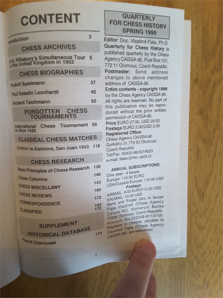 Quarterly for Chess History, Spring 1999 by V. Fiala. View Watchlist >