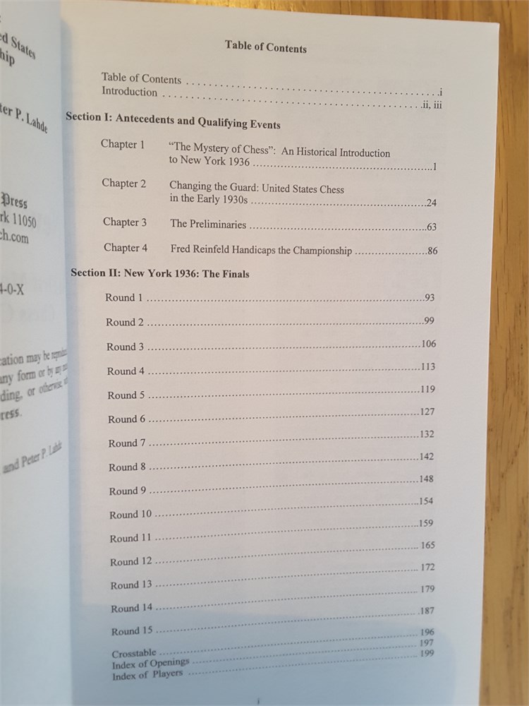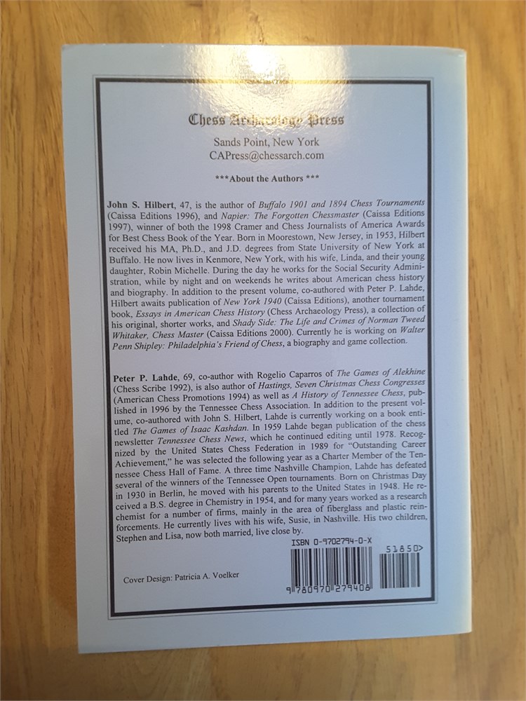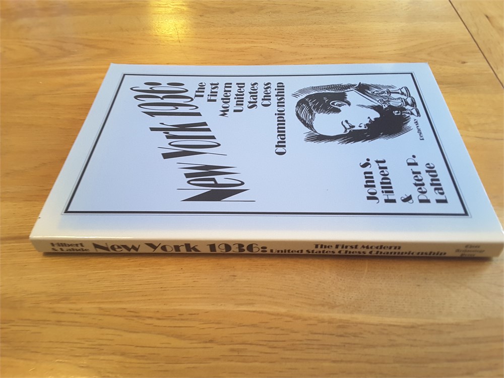 "New York, 1936: The First Modern United States Chess Championship" by J. Hilbert & P. Lahde. Published in softback by Chess Archaeology Press in 2000. 200pp. The book is in Very Good Plus condition for its age. The binding is tight and there is no shelf lean or bowing present. The covers are clean although the spine area suffers from quite strong sunning. Internally the book looks and feels unread. The internal pages are all very clean and unmarked. Games are given in algebraic notation. Inscription, annotation and foxing free. Condition Rating: 8.5/10. Any questions, please just ask.