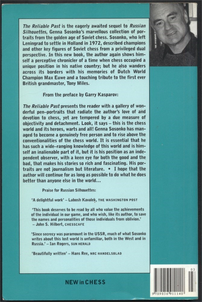 The Reliable Past presents the reader with a gallery of portraits that radiate the author's love of and devotion to chess. Apart from The Professor’ (first published in Dutch under the title Max Euwe 1901-1981 and ‘A Born Optimist’ (first published in the Russian chess magazine 64 in 2001) all articles in this book were originally published in New In Chess Magazine. No games. Few photos.