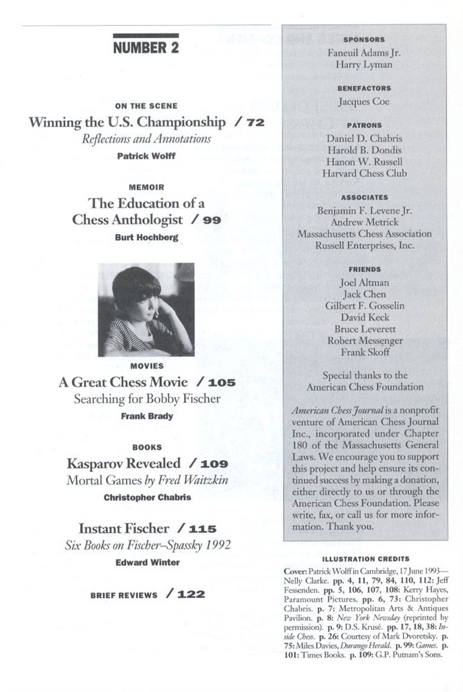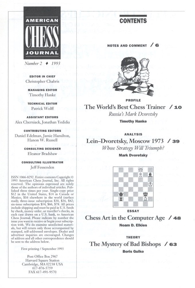 American Chess Journal was unique quality magazine featuring the best chess analysis, writing, and illustration in the world. Published from 1992-1995 in 3 issues, where this is No. 2.