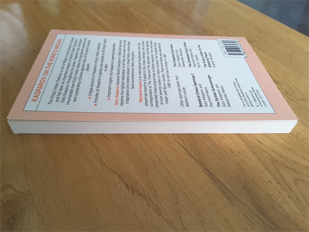 "Kasparov on the King's Indian" by G. Kasparov and R. Keene. Published in softback by Batsford in 1993. 176pp. The book is in Very Good condition for its age. The covers are very clean and bright. There is a miniscule contact dent to the top right hand corner of the front cover (see scan). The page edge blocks are clean. Internally the book is very clean and unmarked. It is inscription, annotation and foxing free. It feels largely unread and there are no creases visible along the spine area. I have, therefore, refrained from taking any pictures of this book's interior as I do not want to bend the spine back, something which has not been done thus far. Games are given in figurine algebraic notation. Condition Rating: 8/10. Any questions, please just ask.