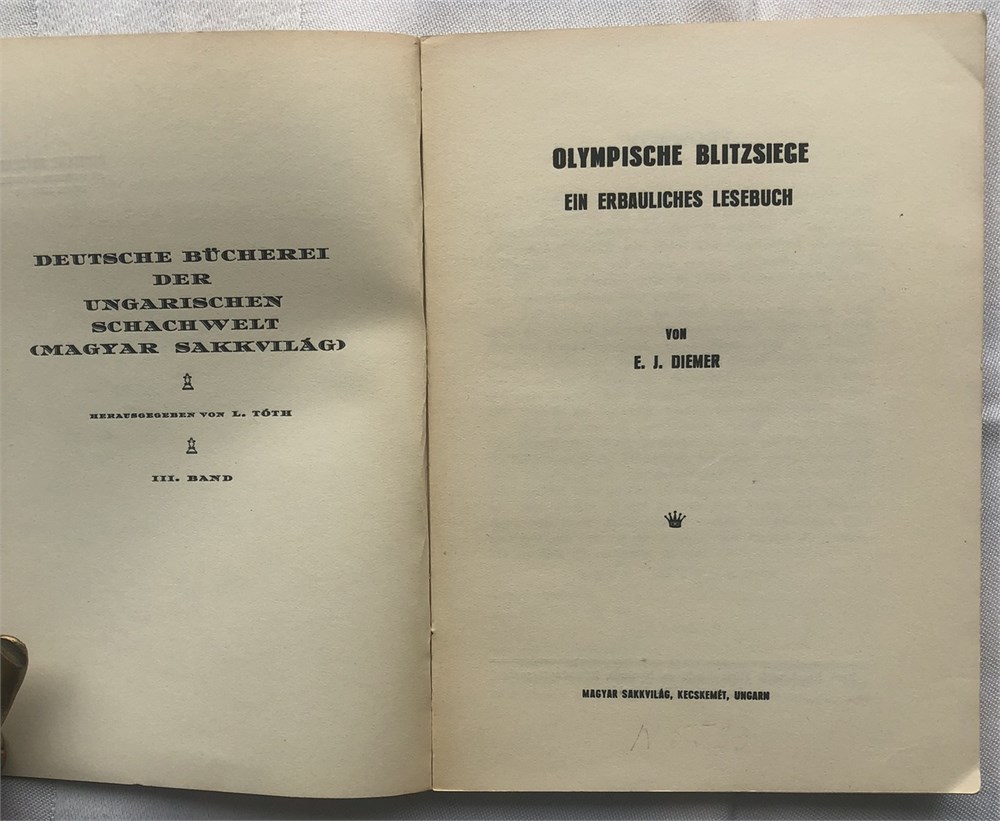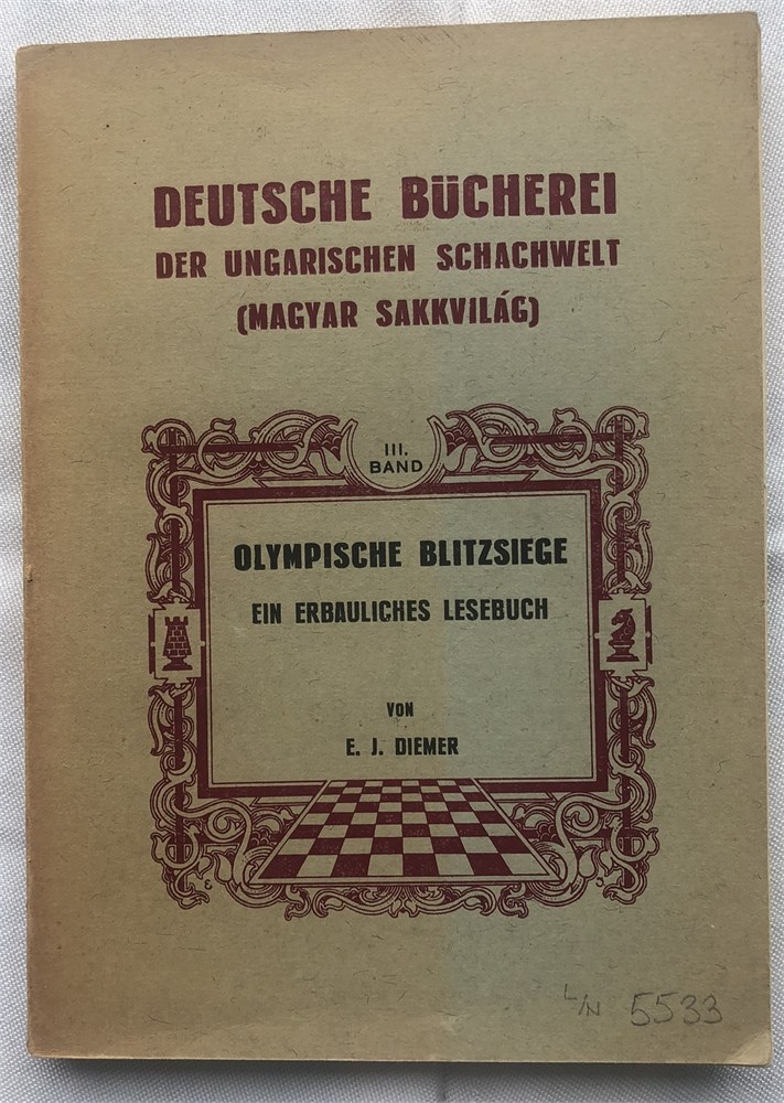 Diemer, E.J. Deutsche Bücherei der Ungarischen Schachwelt, 1936. 117 pages + 1f.adv. Original covers