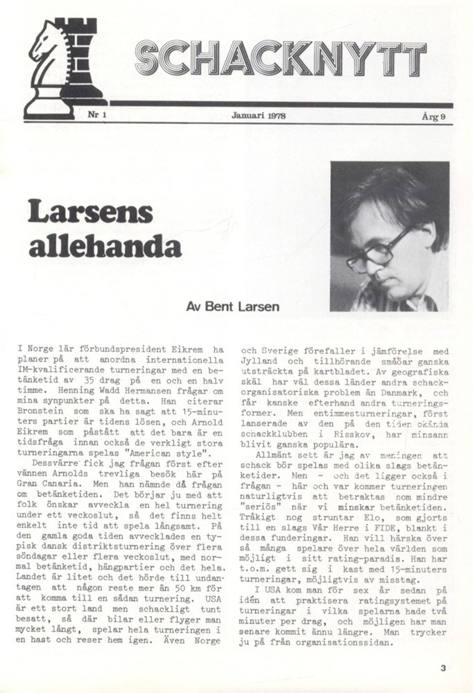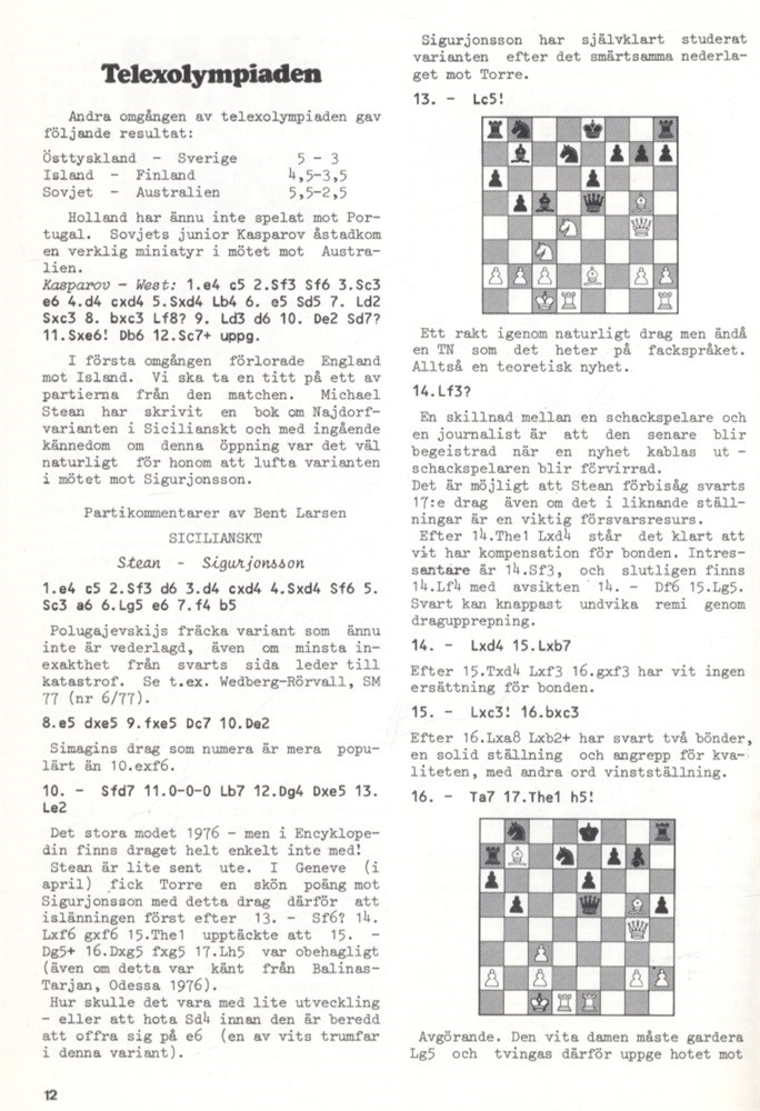 Swedish magazine published 1970-2005. Many annotated games, diagrams and photos.