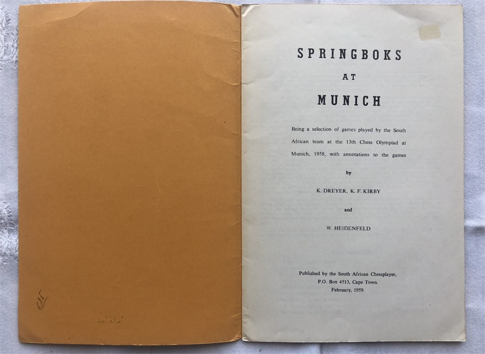 K. Dreyer; K.F. Kirby and W. Heidenfeld. The South African Chessplayer, 1959. 32 pages. Stapled