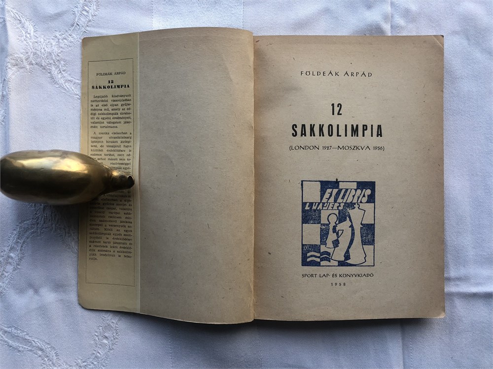 Földeák, Árpád. 12 Sakkolimpia. Sport Lap, 1958. 207 pages. Original softcover.