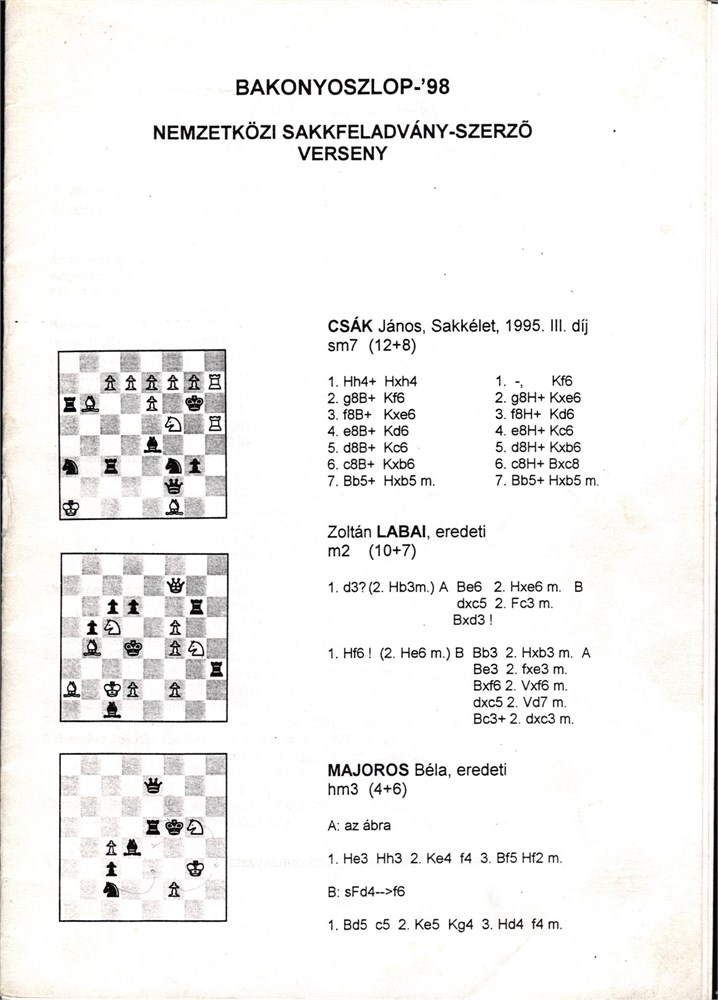Bakonyoszlop - '98, Nemzetkozi Sakkfeladvany-szerzo verseny.