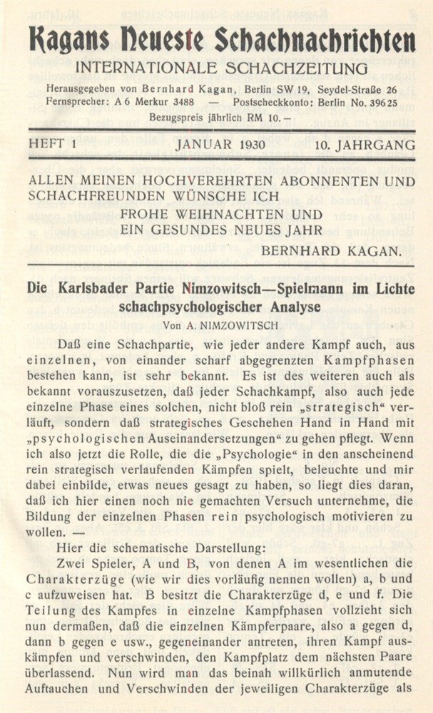 Publisher: Schachverlag Bernhard Kagan, Berlin.