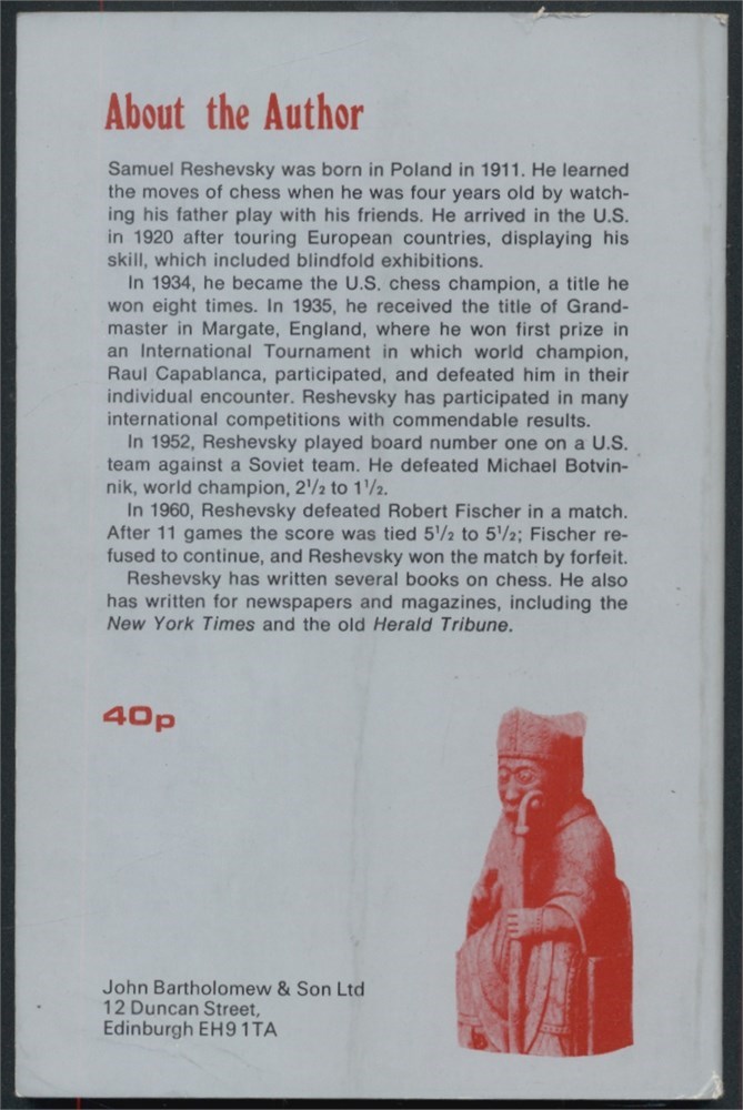 All match games are deeply analysed. Many diagrams. British edition of 'Reshevsky on The Fischer-Spassky Games'.