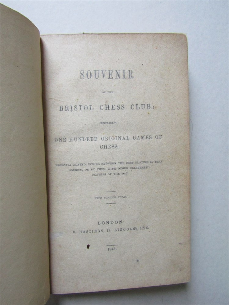 (Williams (Elijah)): Souvenir of the Bristol Chess Club; containing One Hundred Original Games of Chess. R.Hastings, 1845. 1st Edn.