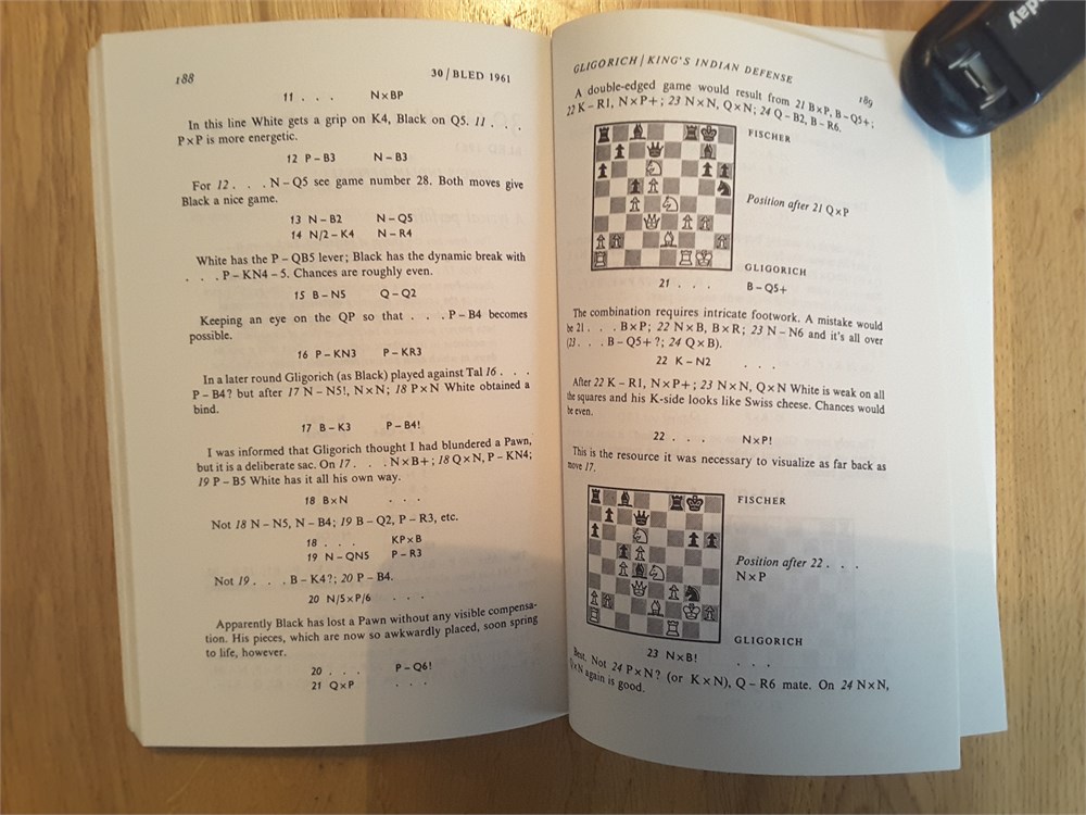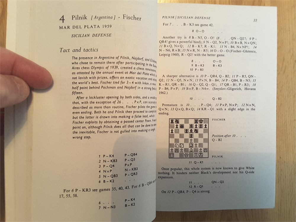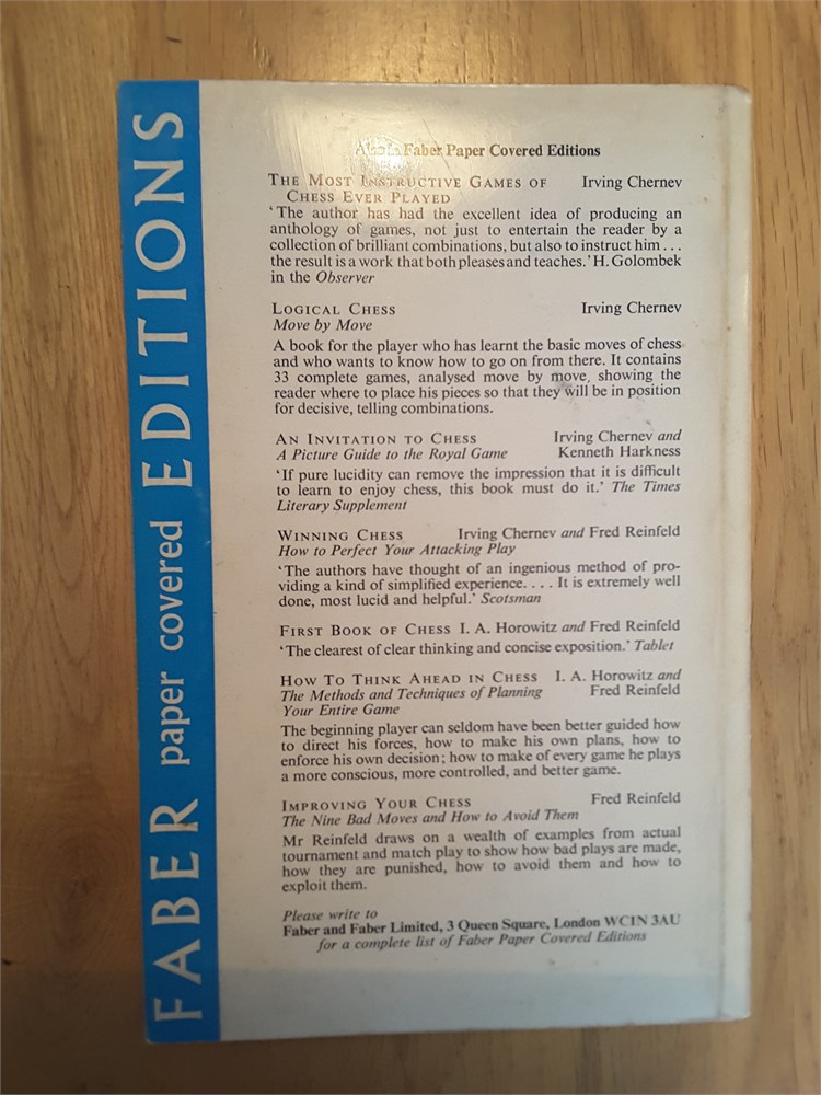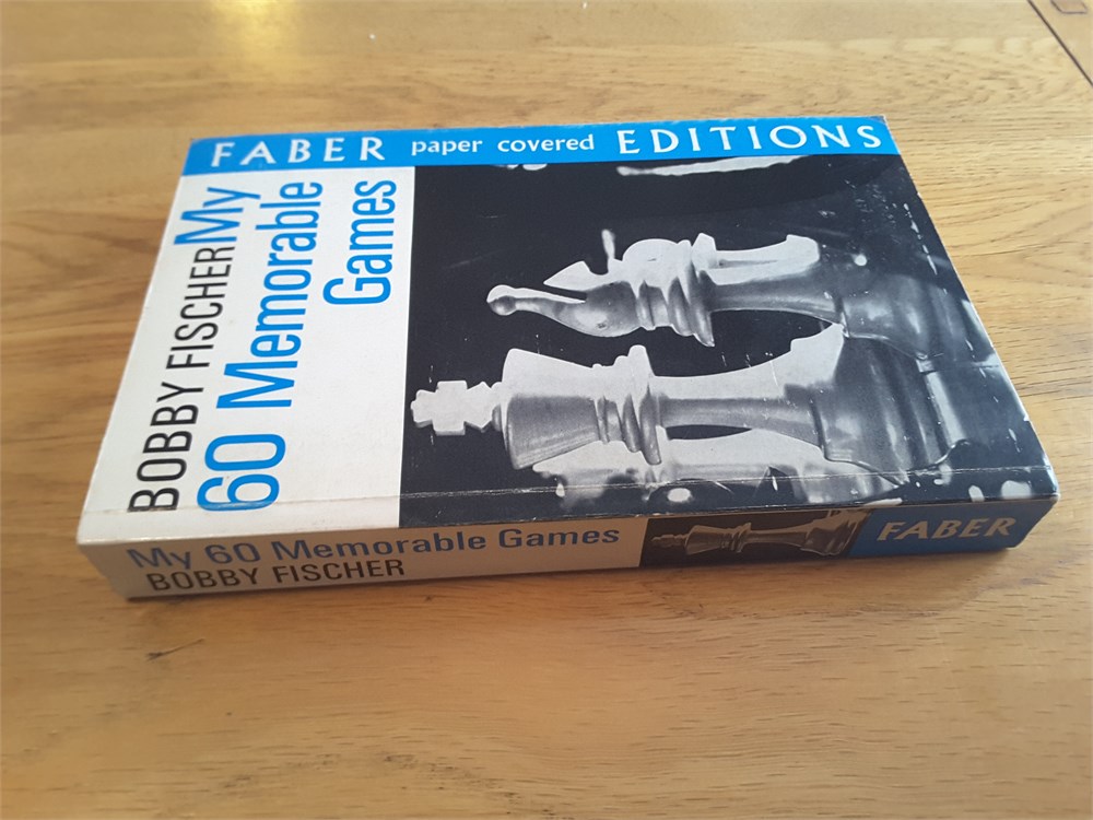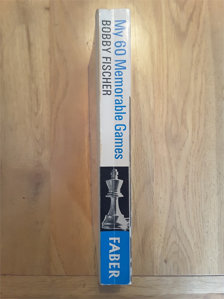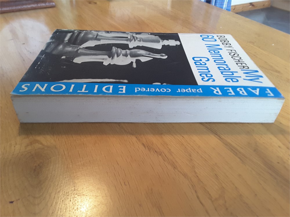 "My 60 Memorable Games" by Bobby Fischer. Published in softback by Faber & Faber in 1972. 384pp. The book is in Good Plus condition for its age. The binding is tight and there is no shelf lean present. The covers are clean. The page edge blocks are clean although there is some lighting foxing and age-handling evident. The foxing does not extend onto any text pages. Internally the book is in very good condition. It is very clean and unmarked and it is obvious that this volume has been very well cared for over the years. The book is inscription and annotation free. Games are given in English descriptive notation. Condition Rating: 7/10. Any questions, please just ask.