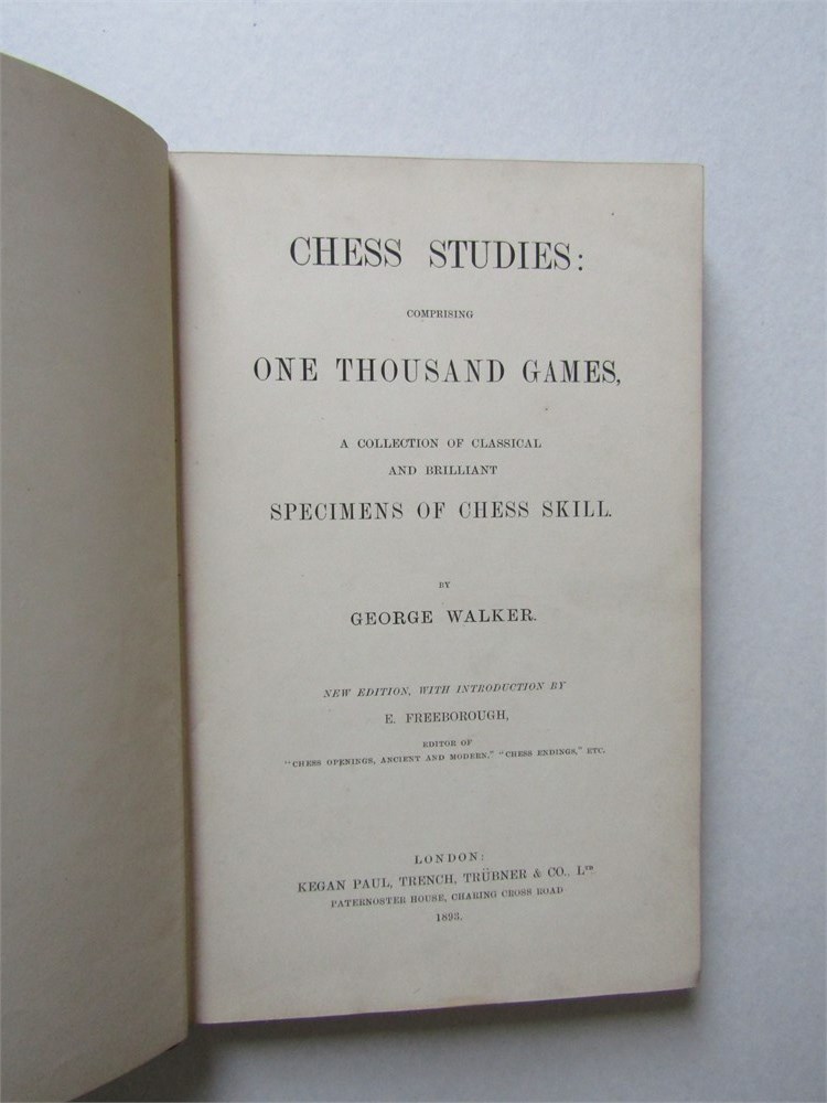 Walker (G.): Chess Studies: Comprising One Thousand Games, a Collection of Classical and Brilliant Specimens of Chess Skill. Kegan Paul &c.1893. New Edn, with Introduction by E.Freeborough.