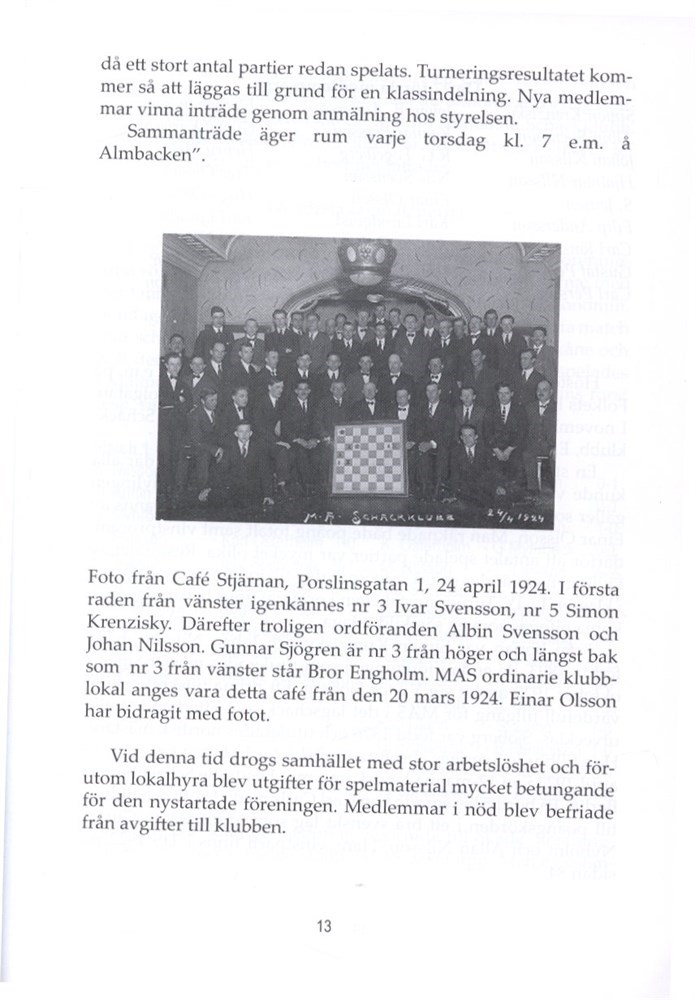 A golden Era. Stellan Persson's book about Malmö Workers' Chess Club (MAS) depicts the chess life in Malmö from the beginning of the 20th century until 2010. 434 games. Some photos and diagrams.
