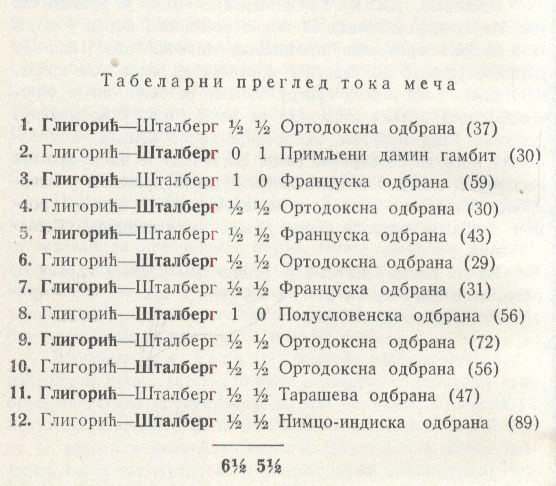 Match in Split/Beograd: Gligoric-Ståhlberg 6½-5½. According to "Tidskrift för Schack" 1949 page 128, the first 8 games were played in Split and the last 4 in Belgrade.