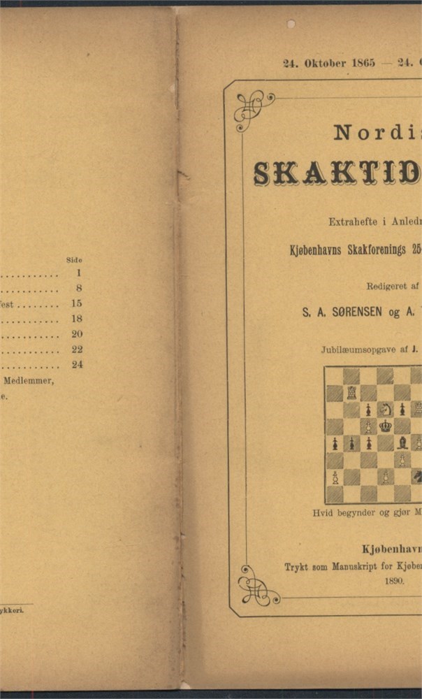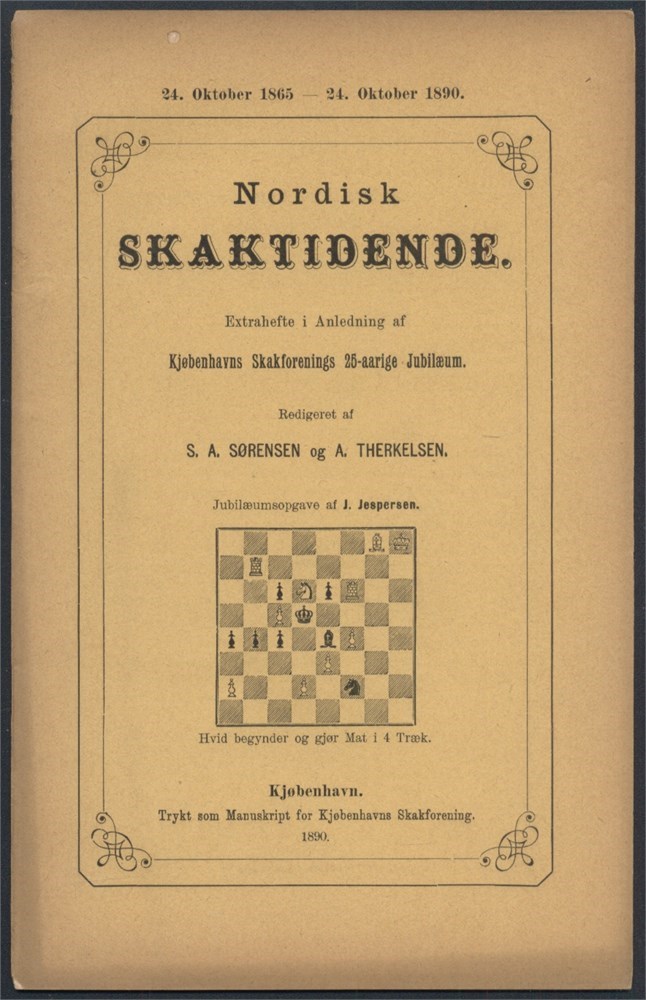 Nordisk Skaktidende, special issue and jubilee publication on the occasion on Kjøbenhavns Skakforenings 25 years anniversary. Some problems, diagrams and annotated games.