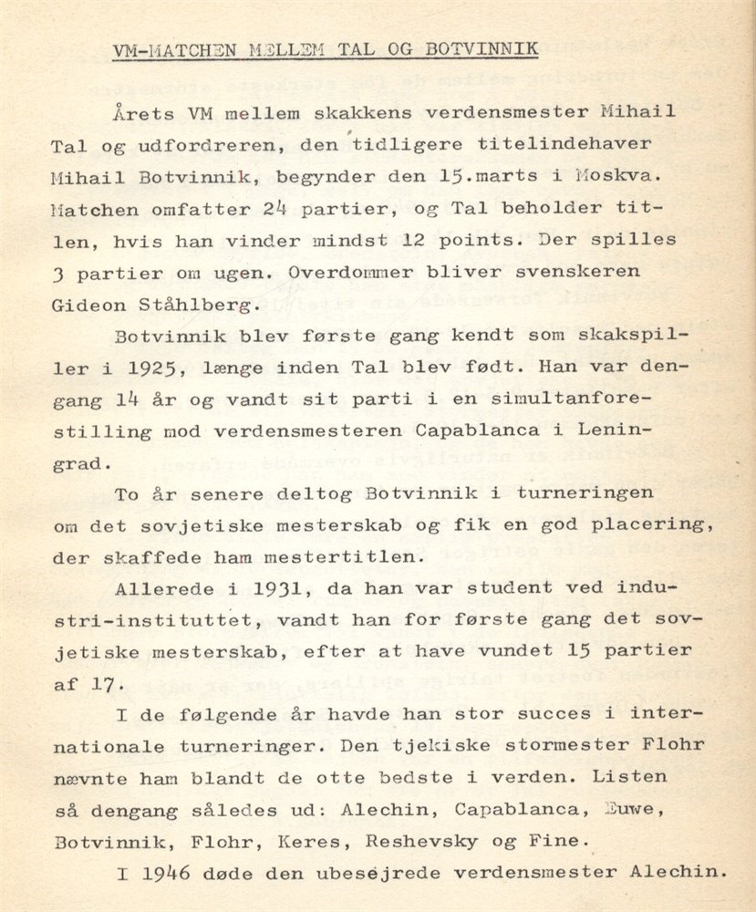 Publisher: Skakhus-Forlaget, Copenhagen 1961.