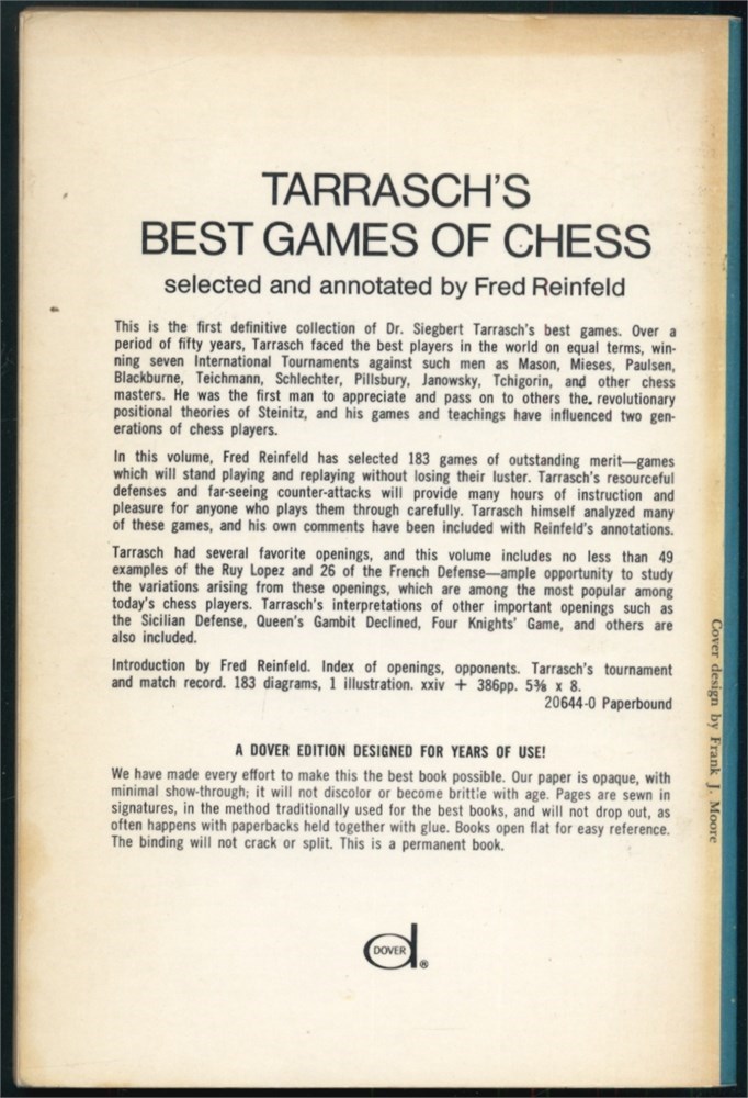 Fred Reinfeld: Tarrasch's Best Games of Chess (1960).