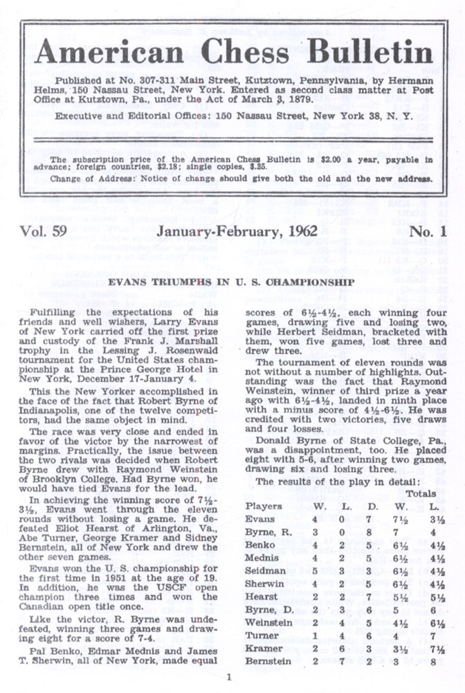 American Chess Bulletin 1962. Volume 59 View Watchlist >