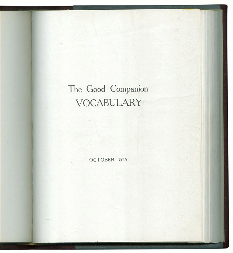 b) „The Good Companion Vocabulary,“ 12 pages: bound in volume VI, after no.9.