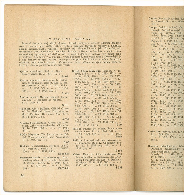 Catalogue of Chess Books in the Brno Pedagogic Library