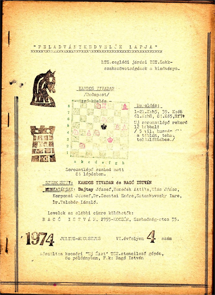 "Feladvanykedvelok Lapja", 1974.vii-viii, VI, Evfolyam, 4 szam (= number),