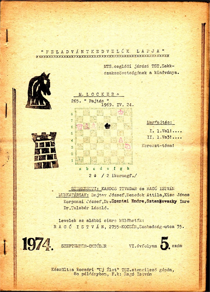 "Feladvanykedvelok Lapja", 1974.ix-x, VI, Evfolyam, 5 szam (= number).