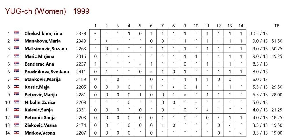 Belgrade 1999, YUG Women’s Championship View Watchlist >