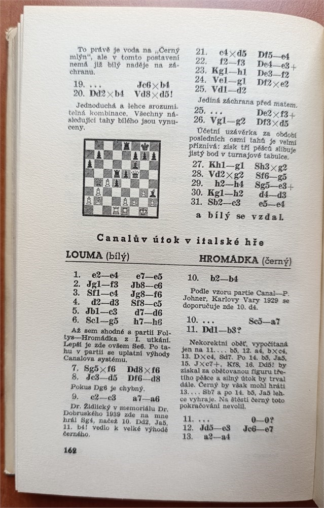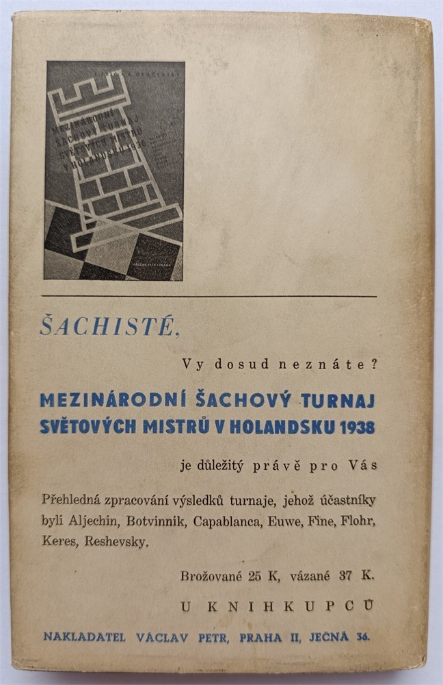The book is divided into two parts. The first deals with Rakovnik and its surroundings (pages 7–91) and the history of chess in Rakovnik (pages 92–95). The second part is purely chess-related. Besides an article by Karel Opocensky titled “Poet Above the Chessboard” and an article by Josef Moravec “How a Chess Problem Is Created,” it covers the 16th Congress of the Czech Chess Association held here in the second half of August 1940. The Master tournament is described in detail, round by round, with all games and commentary (won by Foltys ahead of Opocensky and Olexa). At the end of the book, 14 selected games from the main tournament are included (1. Thelen).