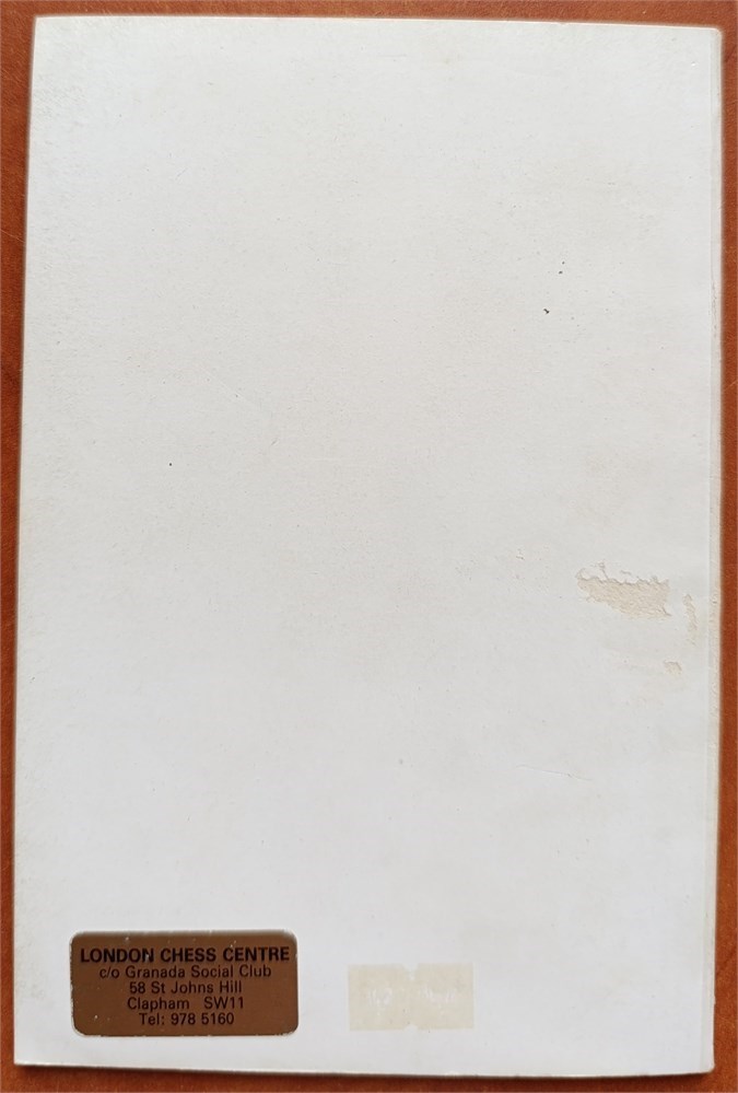 Condition - Good: cover is slightly soiled, with some scratches on the back and a label of the London Chess Centre affixed.