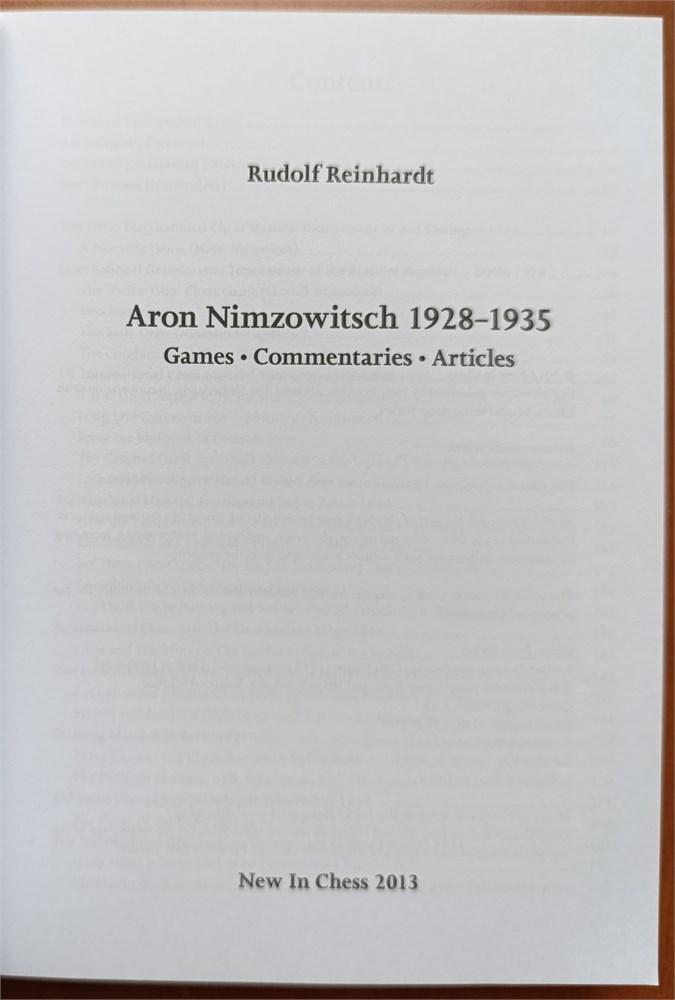 Reinhardt, Rudolf. Aron Nimzowitsch 1928 - 1935. Games·Commentaries·Articles. Alkmaar, New in Chess, 2013. In English. 414 pages. Original softcover.