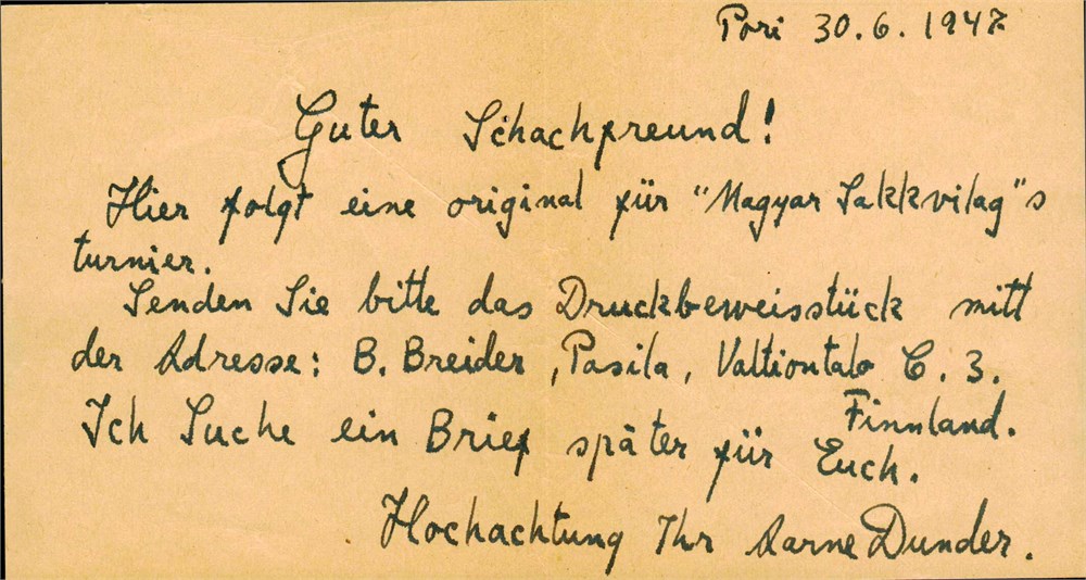 DUNDER Aarne - 1947.06.30, Pori. Letter View Watchlist >