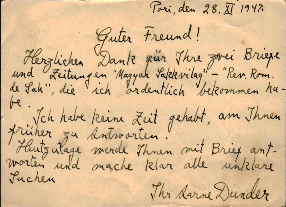DUNDER Aarne - 1947.11.28, Pori. Postcard View Watchlist >