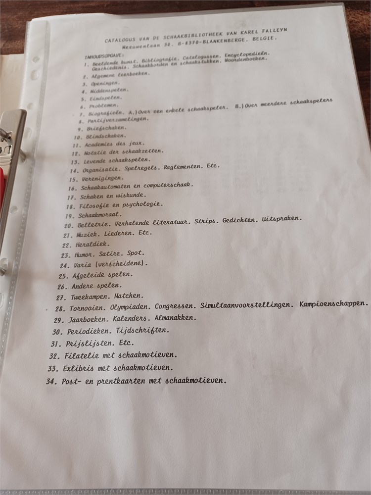 Catalogus schaakbibliotheek Karel Falleyn
