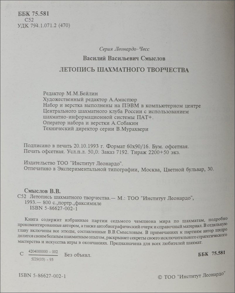 This book was published in Moscow in 1993 by the Leonardo Institute in a limited edition of 2200 + 50 copies.