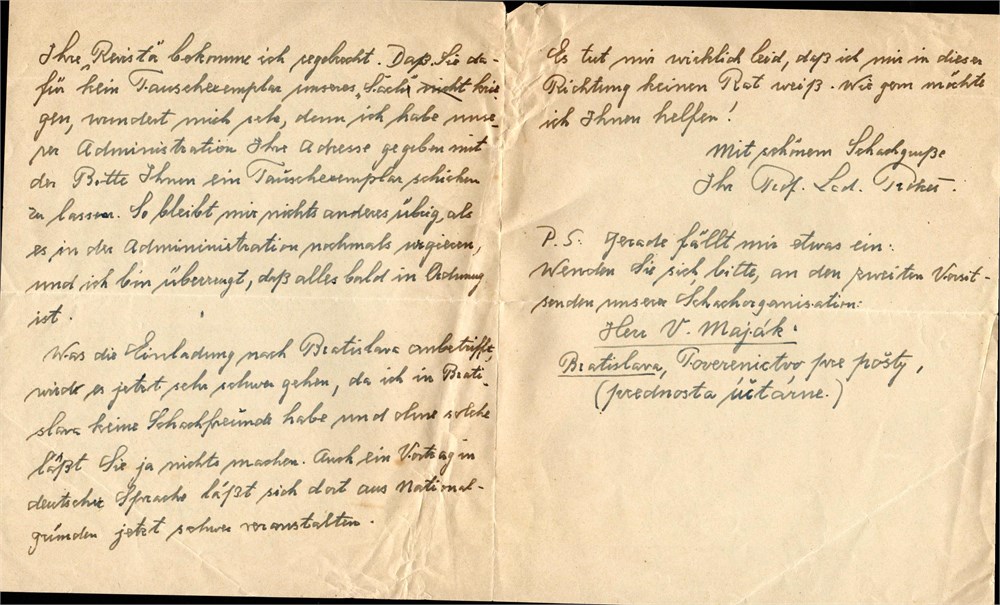 Letter to P. Farago, hand-written, in German, 3 pages size 16x19 cm.