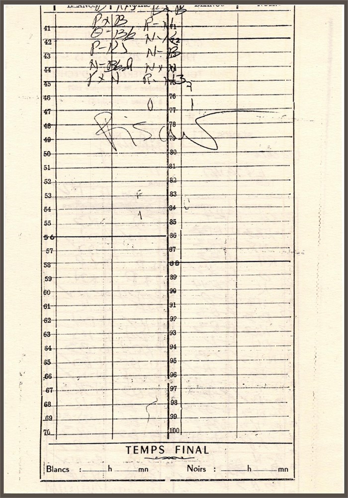 Soussa, 1967 IZT. Xerox-copy of Fischer - Reshewsky score sheet [Lot A] View Watchlist >