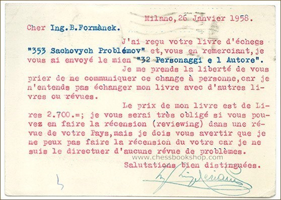 Luigi Ceriani: signed postcard from 26 Janvier 1958 View Watchlist >