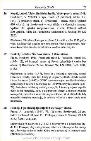 An annotated bibliography of chess literature in Czech language published before 1946. The description contains more than 500 entries, of which ca 260+ are books, 34 magazines and 200+ chess columns in non-chess periodicals. Detailed index in the end.