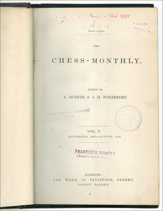 The Chess Monthly was published in London between 1879 and 1896 by Leopold Hoffer, together with J. H. Zukertort until 1888.