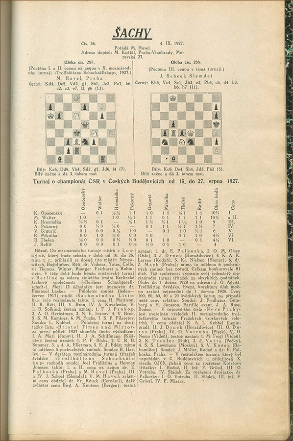 Narodni osvobozeni 1927 (chess columns only).