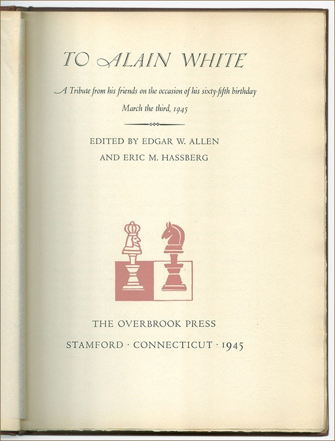 To Alain White. With two Notes of Thanks. Overbrook Press 1945 View Watchlist >